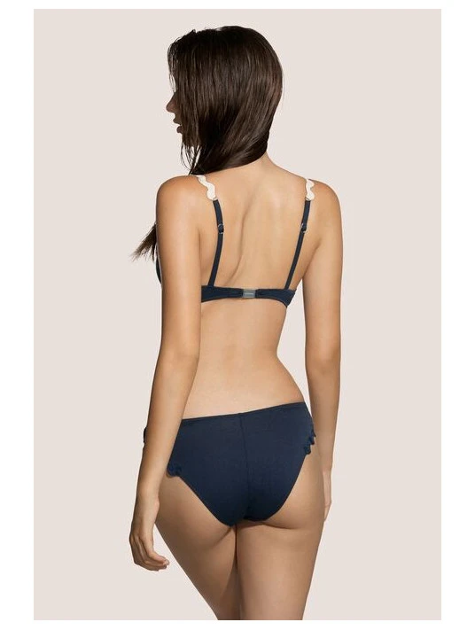 Broderie décorative contrastante dans la zone de l’emmanchure et le long de la bretelle avec réglage élastique dans le dos pour une plus grande adaptabilité.