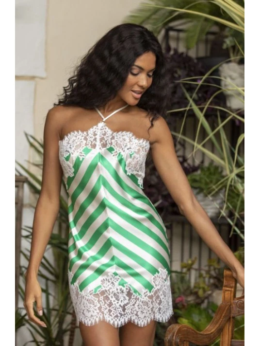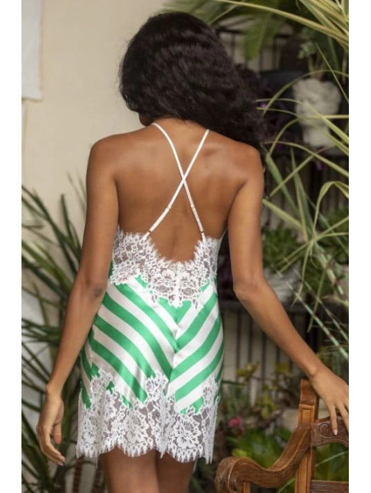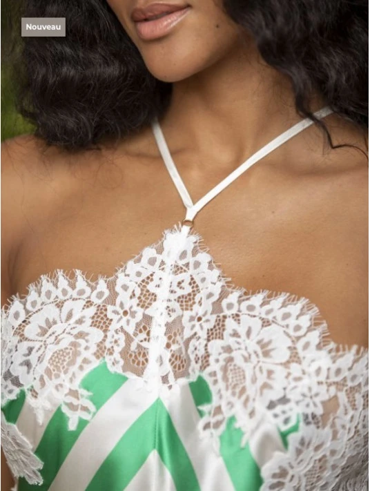 Combinette rayée vert et blanc en soie par Marjolaine