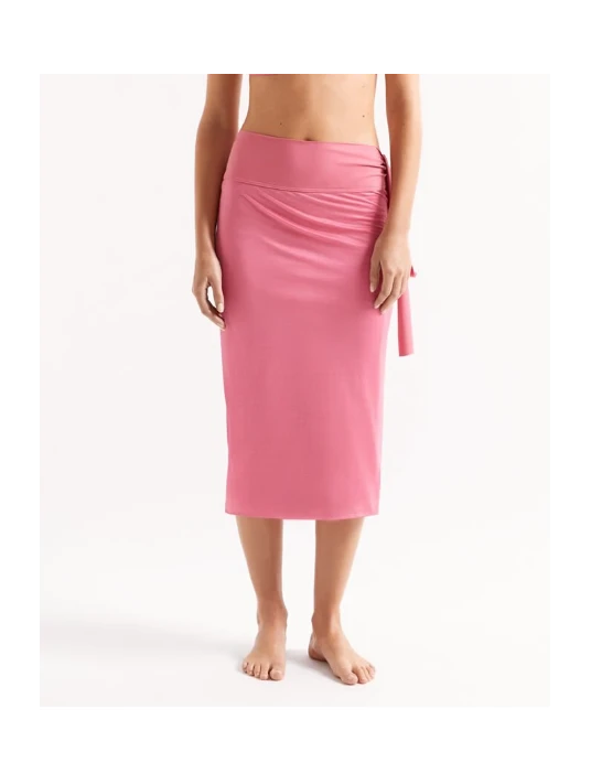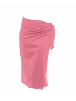 Paréo en jersey de coton léger possède une ceinture fixe en Peau Douce à nouer sur le côté.