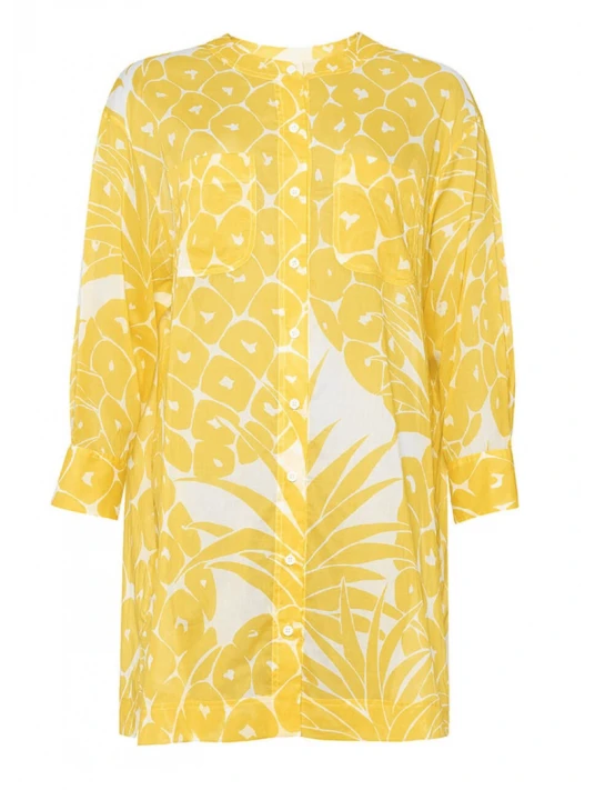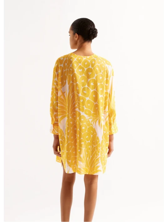 Colorée et élégante, la tunique courte en coton Ricardo ANANAS se pare d’un imprimé couleur Passion aux inspirations tropicales.