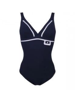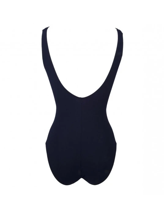 Une pièce en maille unie. Jeu de plis blancs au décolleté et sous poitrine.