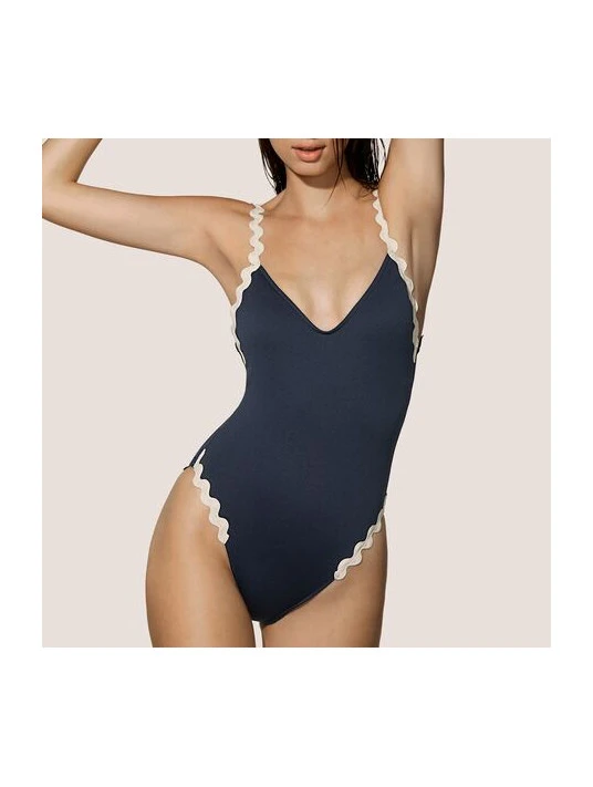 Maillot de bain à col en V avec bonnets amovibles et doublure intérieure pour un meilleur ajustement.