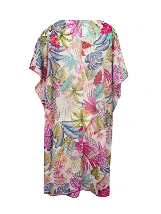 Poncho en voile imprimé avec forme arrondie. Décolleté V avec passepoil piping handmade.