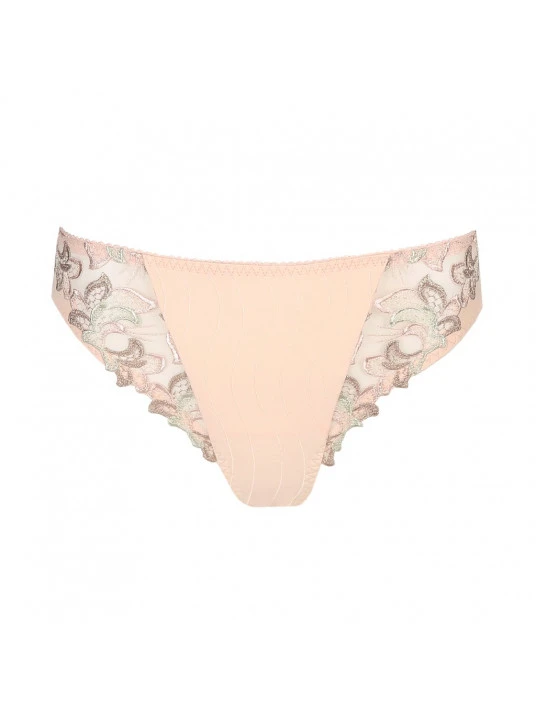Slip brésilien opaque raffiné, orné de broderie à l’échancrure.