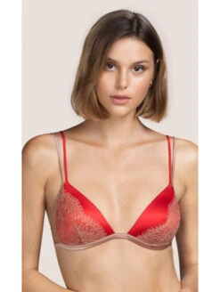 Soutien-gorge triangle bi couleur ANDRES SARDA avec coques rembourrées en soie et bretelles spaghetti doubles.