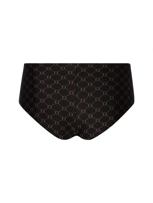 Shorty tout en maille imprimée. Incrustation d’un élastique fantaisie cotés devant.