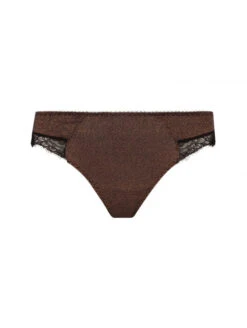 Un coloris cuivre irisé original et sa dentelle fine lui offrent un look festif.