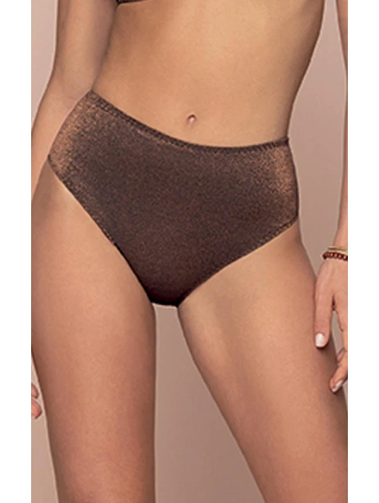 Un coloris cuivre irisé original et sa dentelle fine lui offrent un look festif.