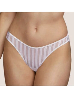 Tanga ANDRES SARDA avec incrustations de dentelle et details gansés dans le dos.