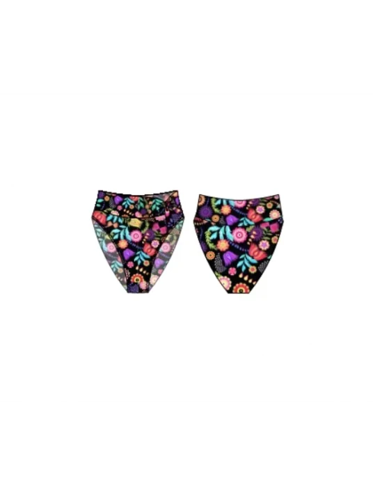 Slip en maille imprimée. Revers à la taille pour faire varier la hauteur du slip.