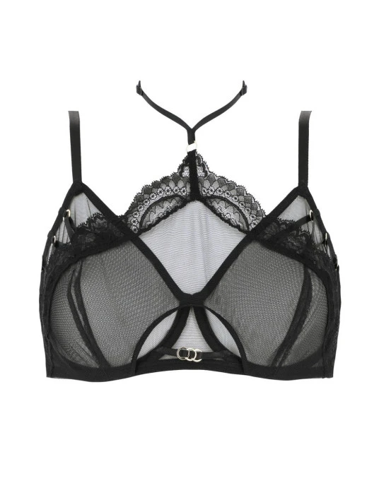 Les bonnets à la transparence suggestive enveloppent délicatement la poitrine pour un galbe naturellement rond tandis que l’empiècement de tulle orné d’une délicate dentelle vient sublimer le décolleté.