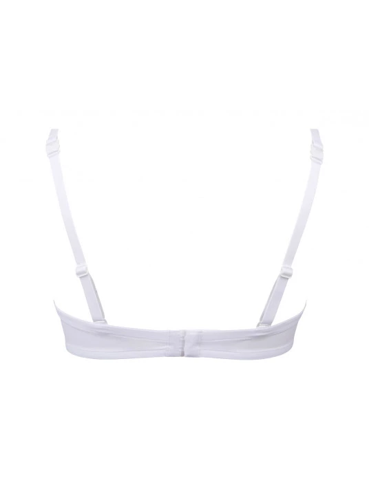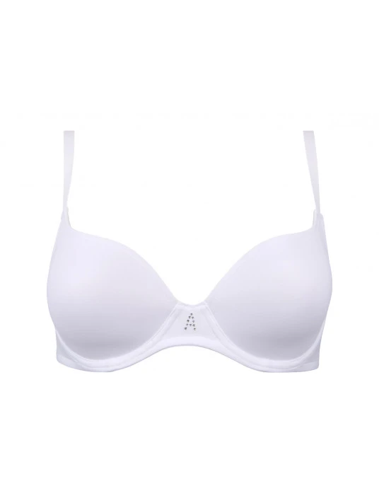 Soutien-gorge à coques en maille. Bonnets moulés. Bretelles amovibles et multi-positions avec fermoir clipable. Crochetage microfibre. Motif A strassé.