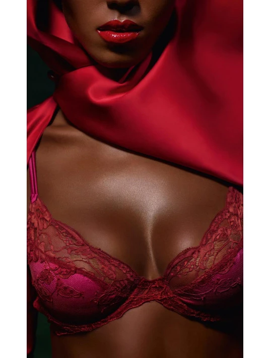 Bourgogne : dentelles et broderies bordeaux créent un joli contraste avec la soie fuchsia.
