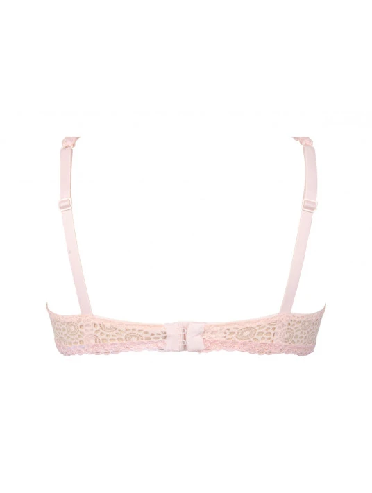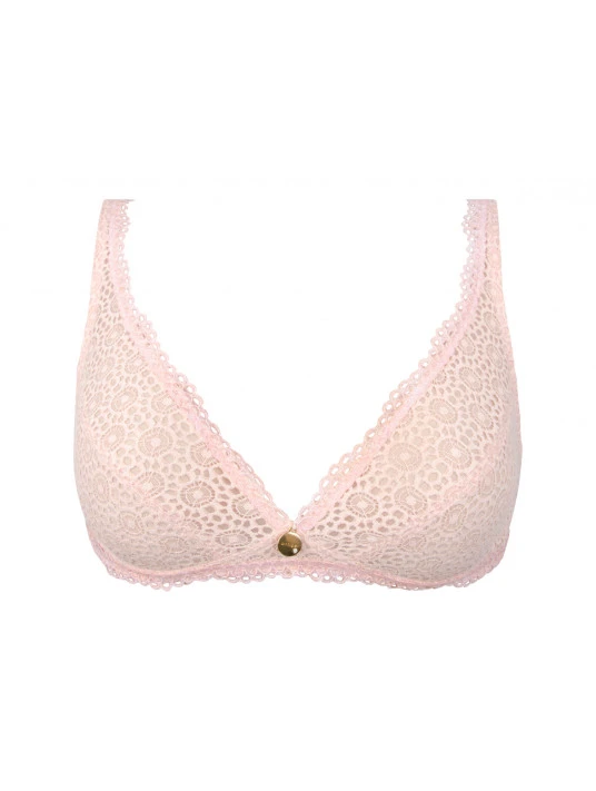 Soutien gorge souple sans armature tout en dentelle. Le décolleté et le bas de basque sont enrichis d’une bordure fantaisie. Bijou à l’entregorge.
