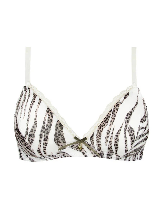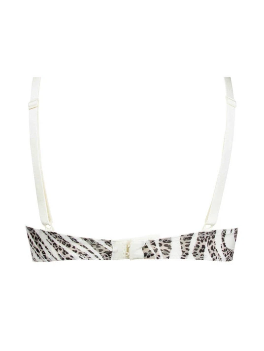 Un petit nœud en satin accompagné d’un sublime bijou doré au motif panthère rehausse l’entre-bonnets avec élégance. Bretelles extensibles et réglables.