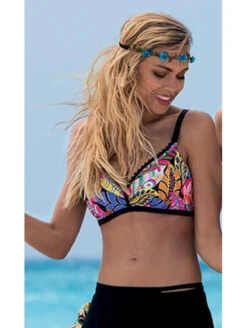 Sa coupe triangle lui confère un décolleté irrésistible. Larges bretelles à clips multipositions, extensibles et réglables. Fermeture dos par clip.