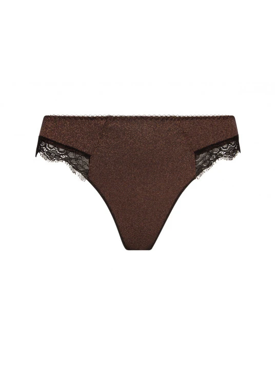 Un coloris cuivre irisé original et sa dentelle fine lui offrent un look festif.