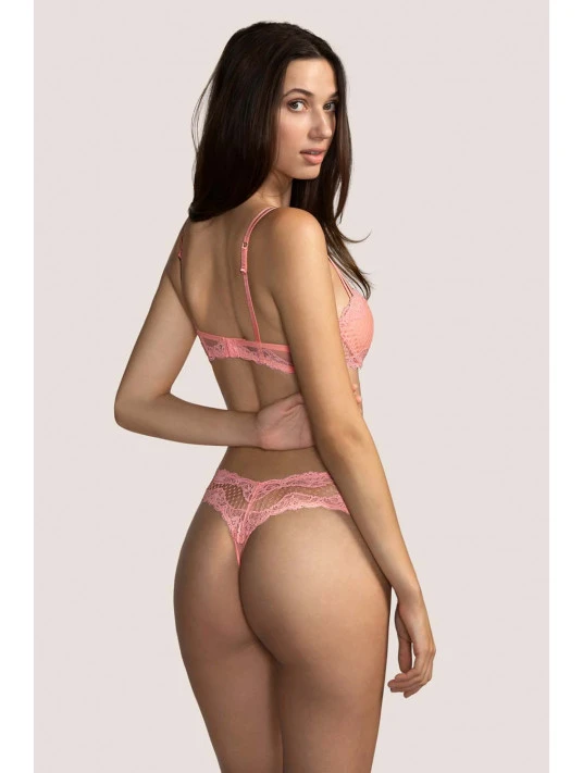 Shorty string entièrement réalisé en tissu treillis avec dentelle florale tout autour Black, noir, pour un look purement sensuel.