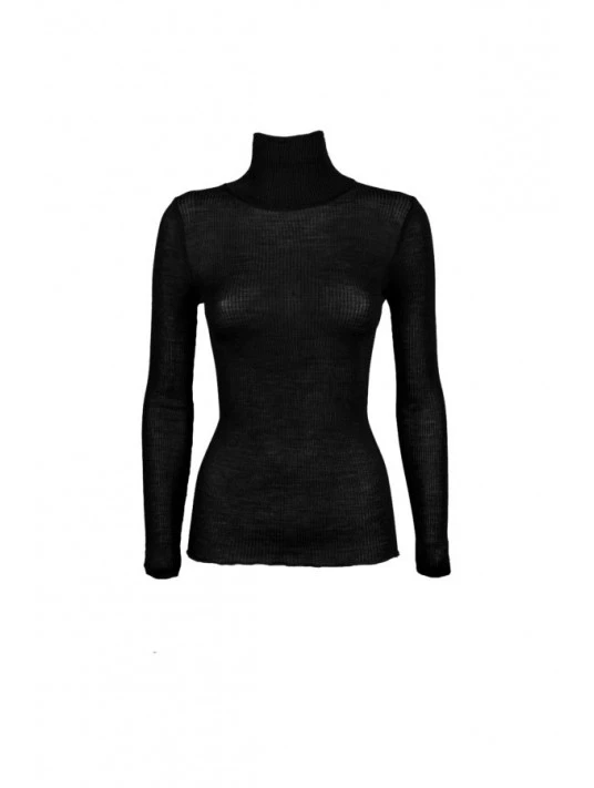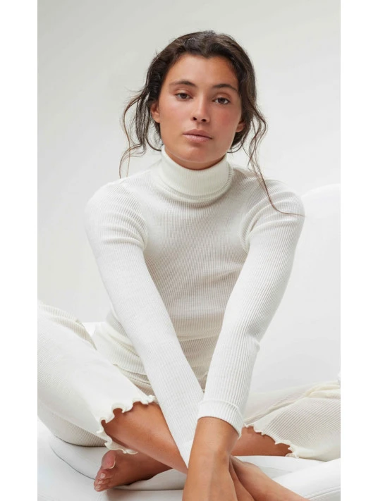 Col roulé à manches longues en laine mérinos extra-fine et pure soie de qualité supérieure.