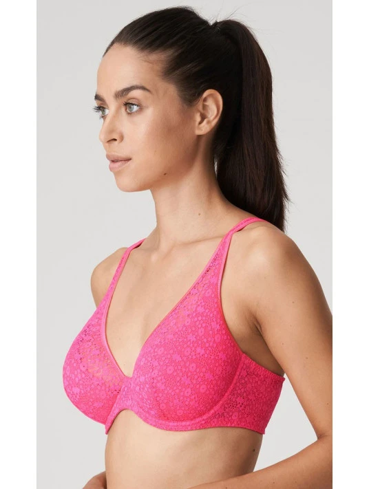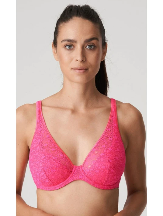 Dentelle vintage all-over, dentelle à cils sensuelle sur les bretelles et dans le dos, coupe triangle tendance et bonnets au décolleté encore plus marqué…