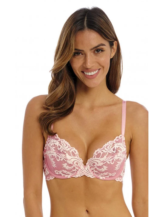 Conçu dans une ravissante dentelle florale stretch, le soutien-gorge classique à armatures Instant Icon est disponible cette saison dans un coloris rose tendre